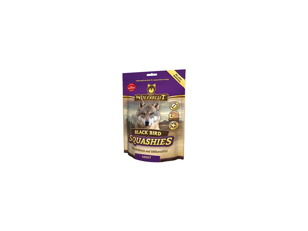 Black Bird Squashies z Wolfsblut doplňují každodenní stravu vašeho psa. Jsou zdravou odměnou nebo malým krmivem na cesty.