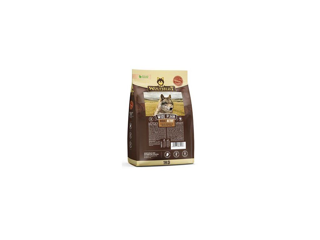 Vlci loví svou kořist od Skalistých hor Severní Ameriky, arktické tundry, hor a lesů Evropy až po pouště a stepi střední Asie. To jim dodává maso a vnitřnosti bohaté na živiny, ale také zeleninu, ovoce, bobule, kořeny a bylinky z obsahu žaludku kořisti. Obilí zde není zahrnuto. Vlk tak přijímá potřebné vitamíny, minerály, stopové prvky, enzymy a druhotné rostlinné látky. Vzhledem k tomu, že vlk je předkem všech psů, naše suché krmivo pro psy Wolfsblut je založeno na přirozených stravovacích návycích vlka. Obsahuje hodně masa nebo ryb v kombinaci se superpotravinami, které obsahují hodnotné ingredience – stejně jako v přírodě, bez obilovin. Náš výběr výjimečných druhů masa a superpotravin bohatých na živiny vychází z vlčích biotopů a jejich pestré stravy. Wolfsblut nabízí každému psovi druhově vhodnou a originální stravu a díky rozmanitosti odrůd si každý najde něco, co snese. Receptura suchého krmiva WIDE PLAIN ACTIVE kombinuje výživu vlků s nejnovějšími vědeckými poznatky o správné výživě psů.
