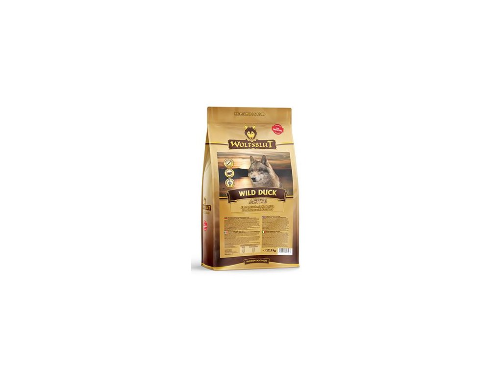Vlci loví svou kořist od Skalistých hor Severní Ameriky, arktické tundry, hor a lesů Evropy až po pouště a stepi střední Asie. To jim dodává maso a vnitřnosti bohaté na živiny, ale také zeleninu, ovoce, bobule, kořeny a bylinky z obsahu žaludku kořisti. Obilí zde není zahrnuto. Vlk tak přijímá potřebné vitamíny, minerály, stopové prvky, enzymy a druhotné rostlinné látky. Vzhledem k tomu, že vlk je předkem všech psů, naše suché krmivo pro psy Wolfsblut je založeno na přirozených stravovacích návycích vlka. Obsahuje hodně masa nebo ryb v kombinaci se superpotravinami, které obsahují hodnotné ingredience – stejně jako v přírodě, bez obilovin. Náš výběr výjimečných druhů masa a superpotravin bohatých na živiny vychází z vlčích biotopů a jejich pestré stravy. Wolfsblut nabízí každému psovi druhově vhodnou a originální stravu a díky rozmanitosti odrůd si každý najde něco, co snese. Receptura suchého krmiva WILD DUCK ACTIVE kombinuje výživu vlků s nejnovějšími vědeckými poznatky o správné výživě psů.