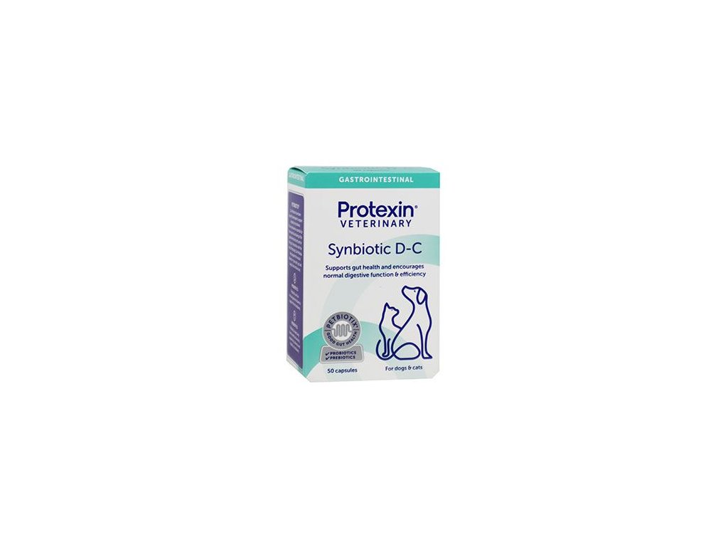 Doplňkové látky: stabilizátory střevní mikroflóry, Protexin probiotikum, Enterococcus faecium (DSM 10663/NCIMB 10415) 4b1707 1x1013 CFU/kg, 2x109 CFU/kaps.