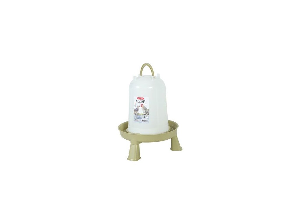 Samostatně stojící plastová napáječka pro kuřata a drůbež, která pojme až 5 l tekutin. Napáječka má odnímatelné nožky. Díky nim je možné napáječku vyvýšit nad úroveň nohou drůbeže a voda v ní tak zůstává déle čistá. Nádržka je průsvitná, takže můžete snadno kontrolovat zbývající hladinu vody.